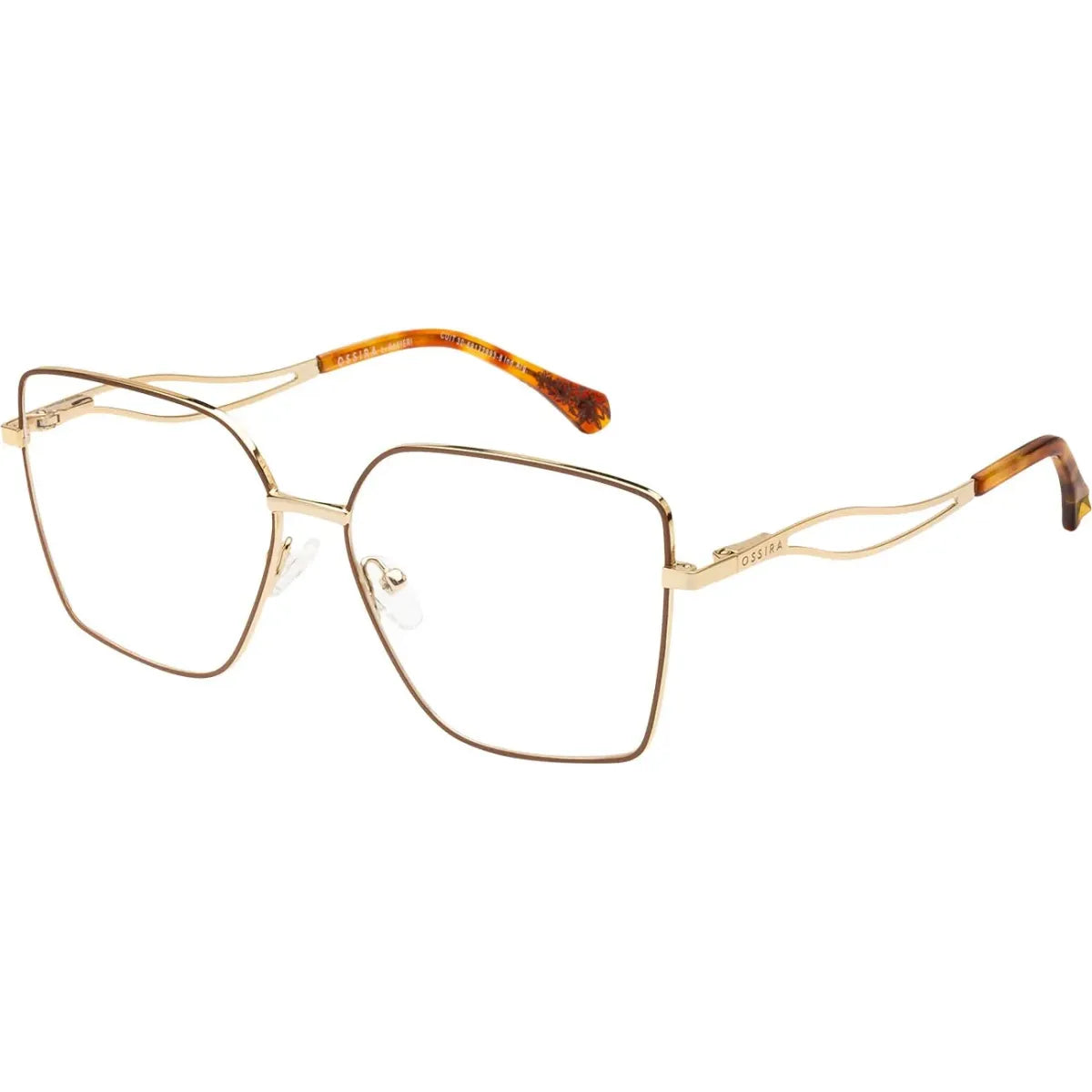 Armazón de diseño sofisticado íntegramente en acetato color marrón mate con detalles en oro. Logo OSSIRA aplicado en las patillas en bajo relieve, que aporta elegancia y refuerza la identidad distintiva de la marca.