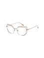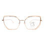 Armazón de diseño elegante íntegramente en acetato color oro brillo con detalles en marrón. Logo OSSIRA aplicado en las patillas en bajo relieve, que refuerza una estética sofisticada y el carácter distintivo de la marca.