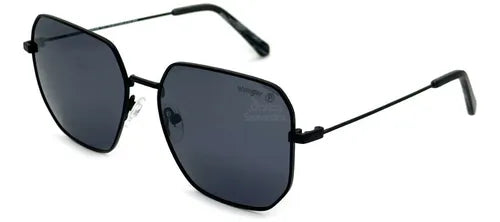 Armazón de diseño hexagonal íntegramente en acetato color negro, con frente y patillas a tono. Logo WRANGLER aplicado en las patillas en bajo relieve, que refuerza una estética sobria y el carácter auténtico de la marca.